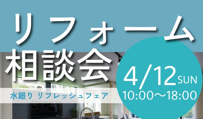 【 古賀市 4月12日】最大200万補助金を活用!一級建築士と叶える「水廻りリフレッシュフェア」