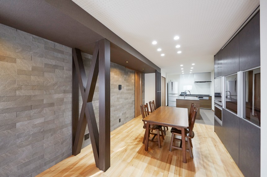 細かく区切られた壁を大きく撤去し、LDKがひとつながりとなる空間に。