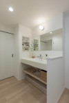 白とナチュラルウッドを基調とし、部分で白タイルを取り入れた 落ち着きある空間をデザイン。
