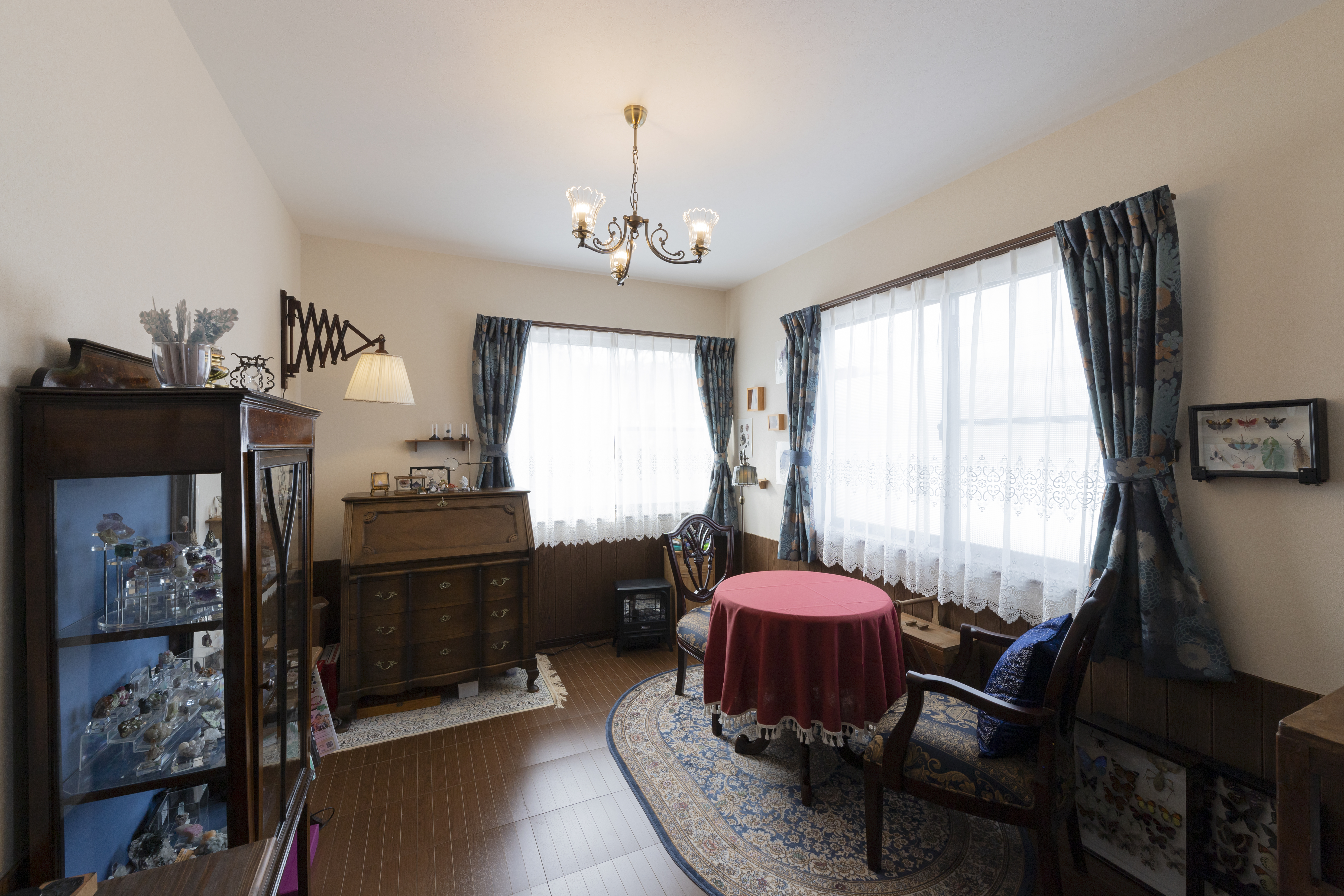 ショールームで何度も打合せした西洋館風の内装とインテリア、WICの入り口を可動式の本棚で隠し扉を造作、