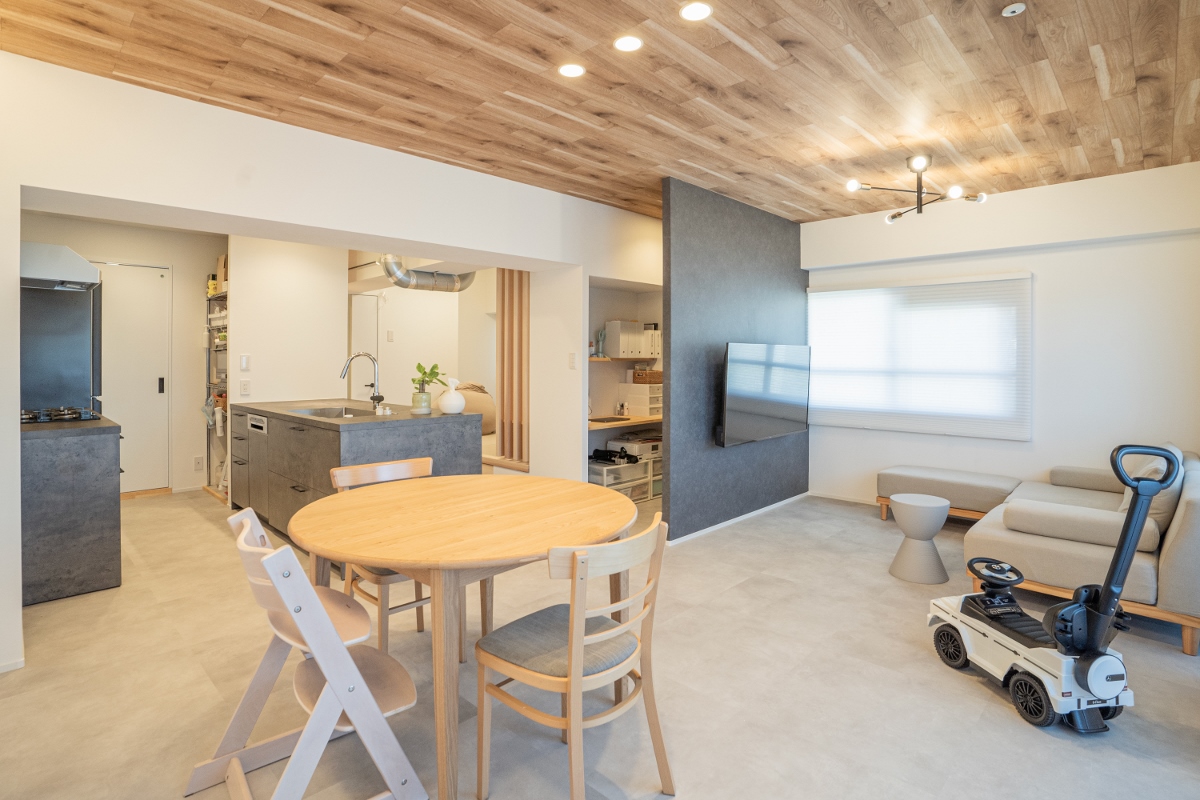 もともと都市部の繁華街に住まわれていた施工主様は、小さなお子様を持つ3人家族。便利な場所ではあるものの、子どもの将来と安全性の観点から住み替えを希望されていました。今回の物件は福岡でも都心部の駅近に位置しており、施工主様の前住居と同じエリアに該当します。近距離の転居なので、生活環境を大きく変えることもなく、利便性もかなり良いとのこと。