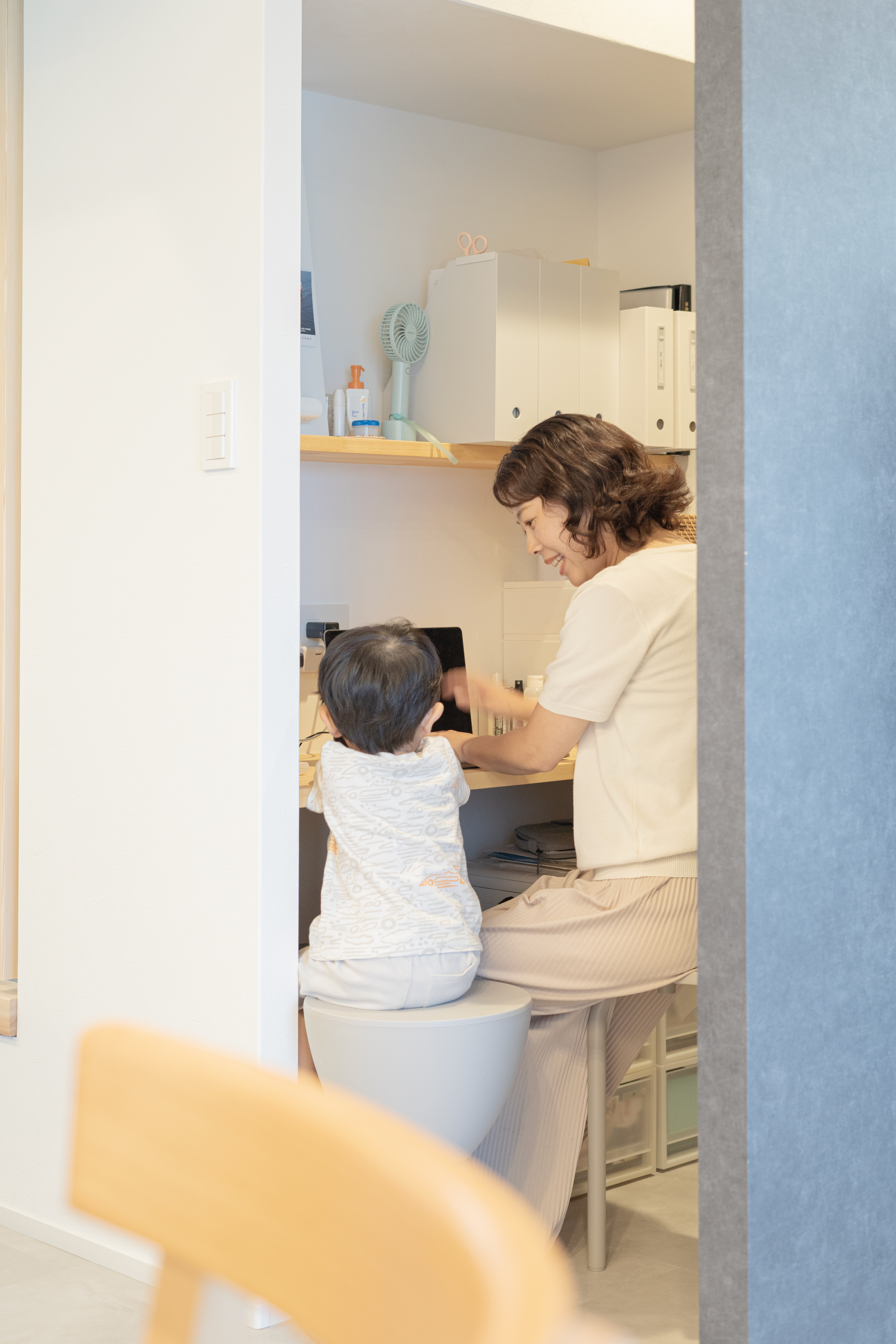 家族で暮らすにはコンパクトな面積だけが今回の課題でしたが、施工主様の「子ども部屋や寝室のように、部屋の用途を固定化したくない」というフレキシブルな考えを尊重し、多用途に使用できる「畳スペース」の提案が生まれました。