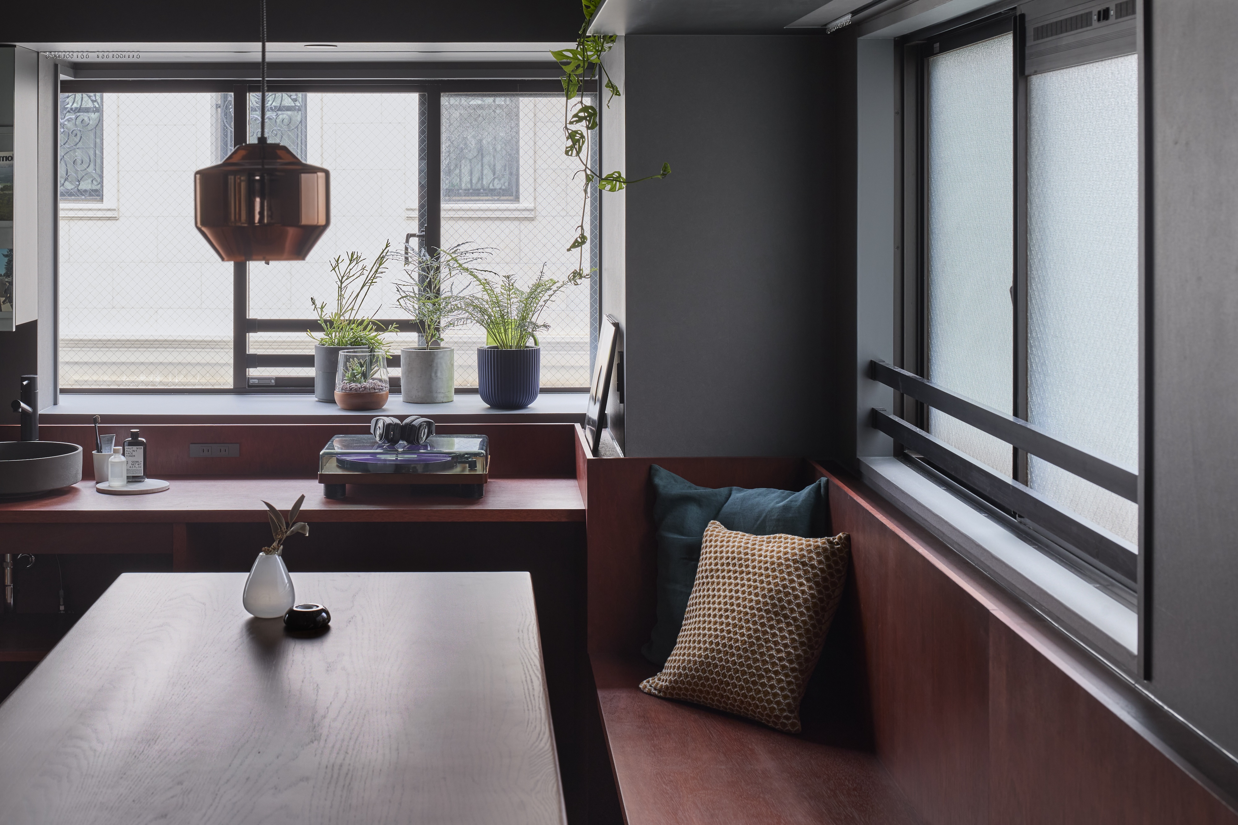 既存の出窓を活かした洗面台は、外光を浴びながら身支度できる心地よい場となり、「街に出かけたくなる」日常をつくり出す。空間の随所に散りばめられた“使いこなし”の仕掛けは住まい手の想像力を刺激し、「どう暮らすか」を自ら考え、選び取るきっかけを与える。賃貸住宅であっても自分らしい暮らしを追求できる。