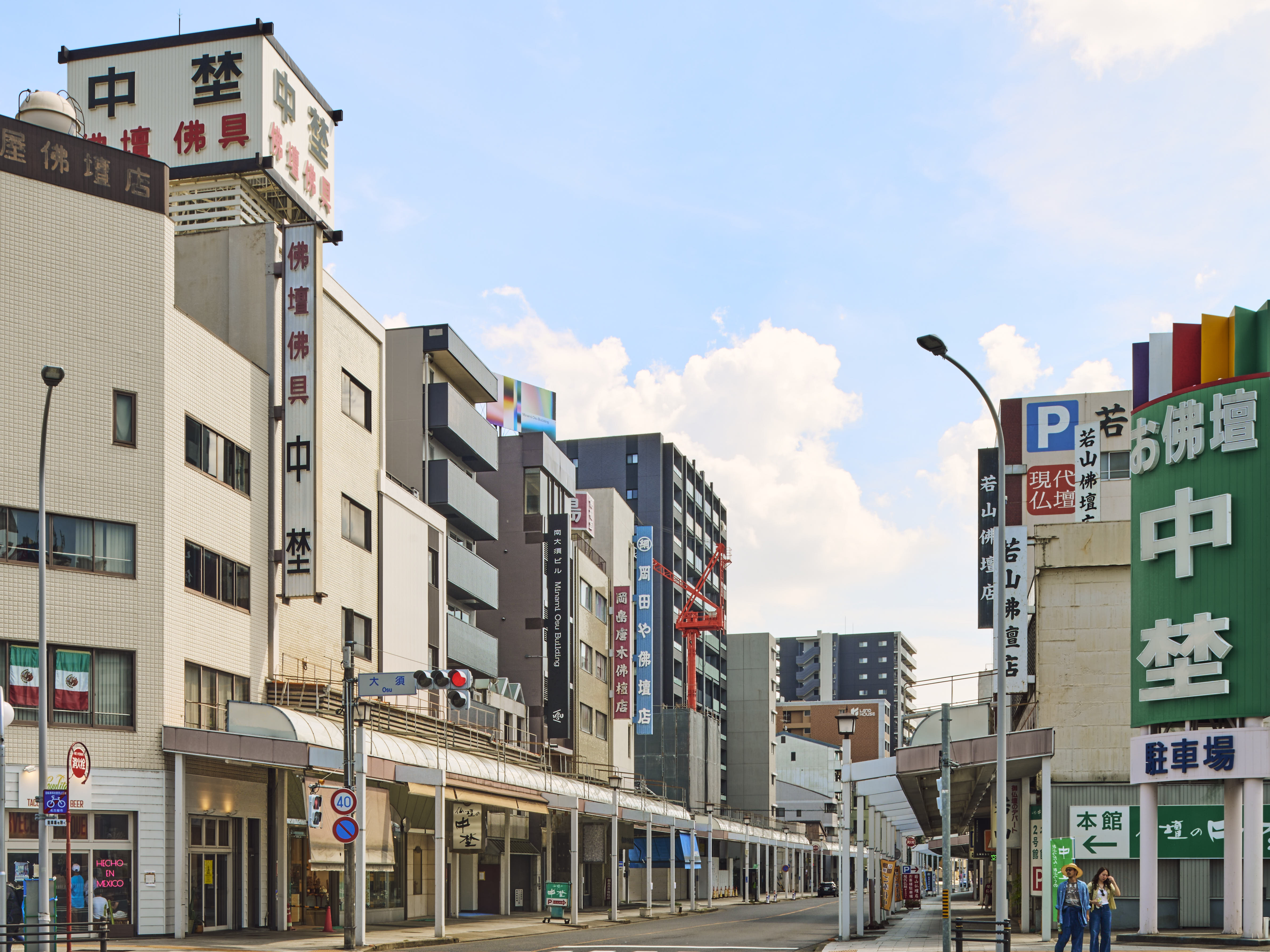 大須商店街の賑わいを横目に、名古屋「仏壇通り」は静まり返っていた。かつて200軒もの仏壇仏具店が連なり、職人の技と祈りの文化を支えたが、後継者不足と需要減少の波に飲まれ、街は徐々に衰退。空き物件が手放され、新築マンションばかりが増えていく中、集いの場は失われていった。このビルも例外ではない。納骨堂としての再生は近隣の反対で立ち消え、数年間放置されたままの姿は、街の停滞を象徴していた。文化と人の往来を結び直す拠点の必要性が、そこには浮かび上がっていた。