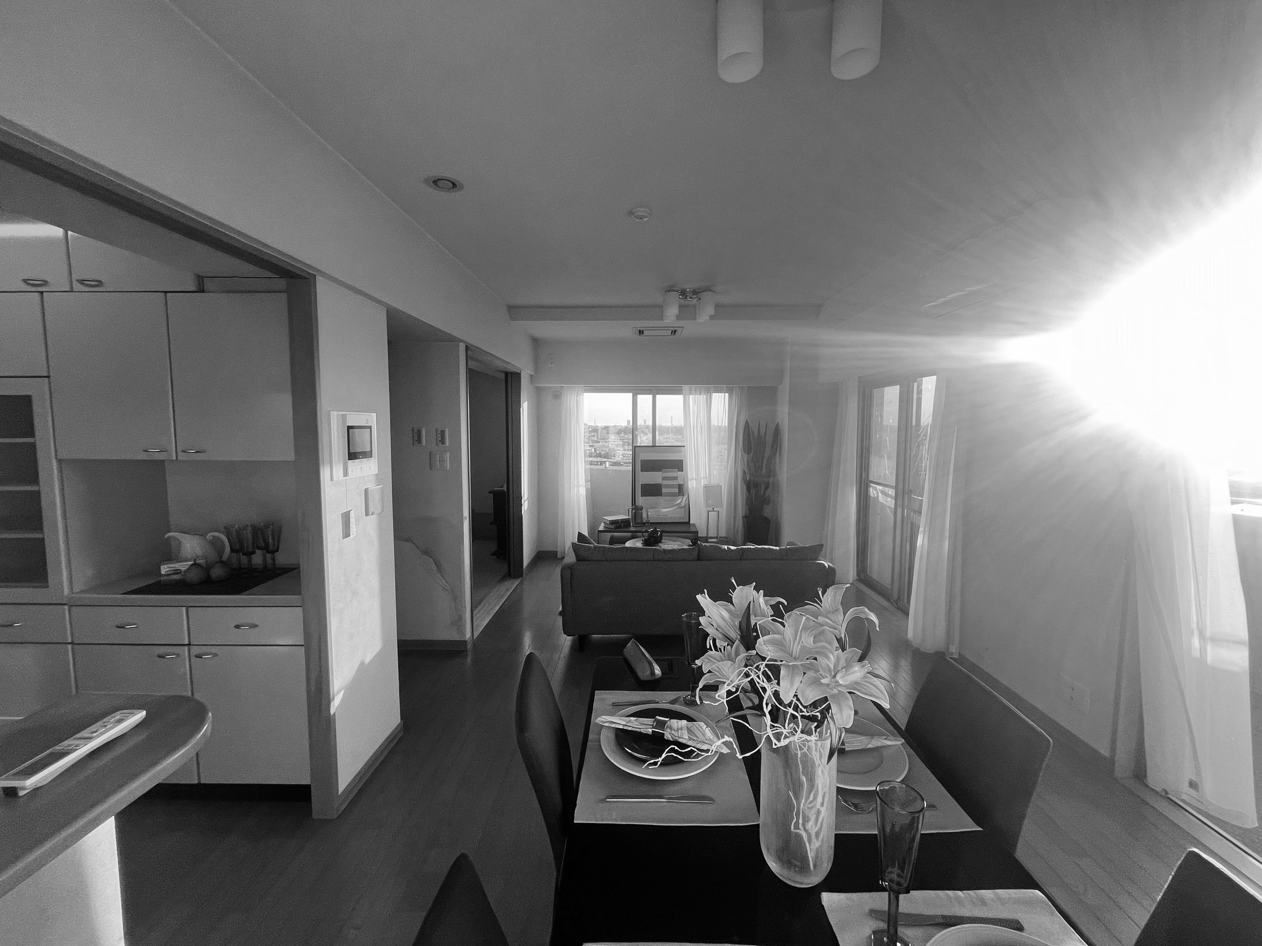 ダイニングには、主役となる食卓を美しく引き立てる、スタイリッシュな埋込式のスポットライトを配灯。