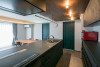 グレイッシュなフローリングを選定し、空間全体をモノトーンで統一し建具にはダークグリーンを選定。建具と巾木の色を揃えて海外の住宅のような雰囲気になりました。