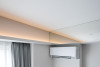 玄関から廊下へ続く間接照明は消灯時でも空間のアクセントとして美しく映えるよう、細部の納まりに気を配りました。