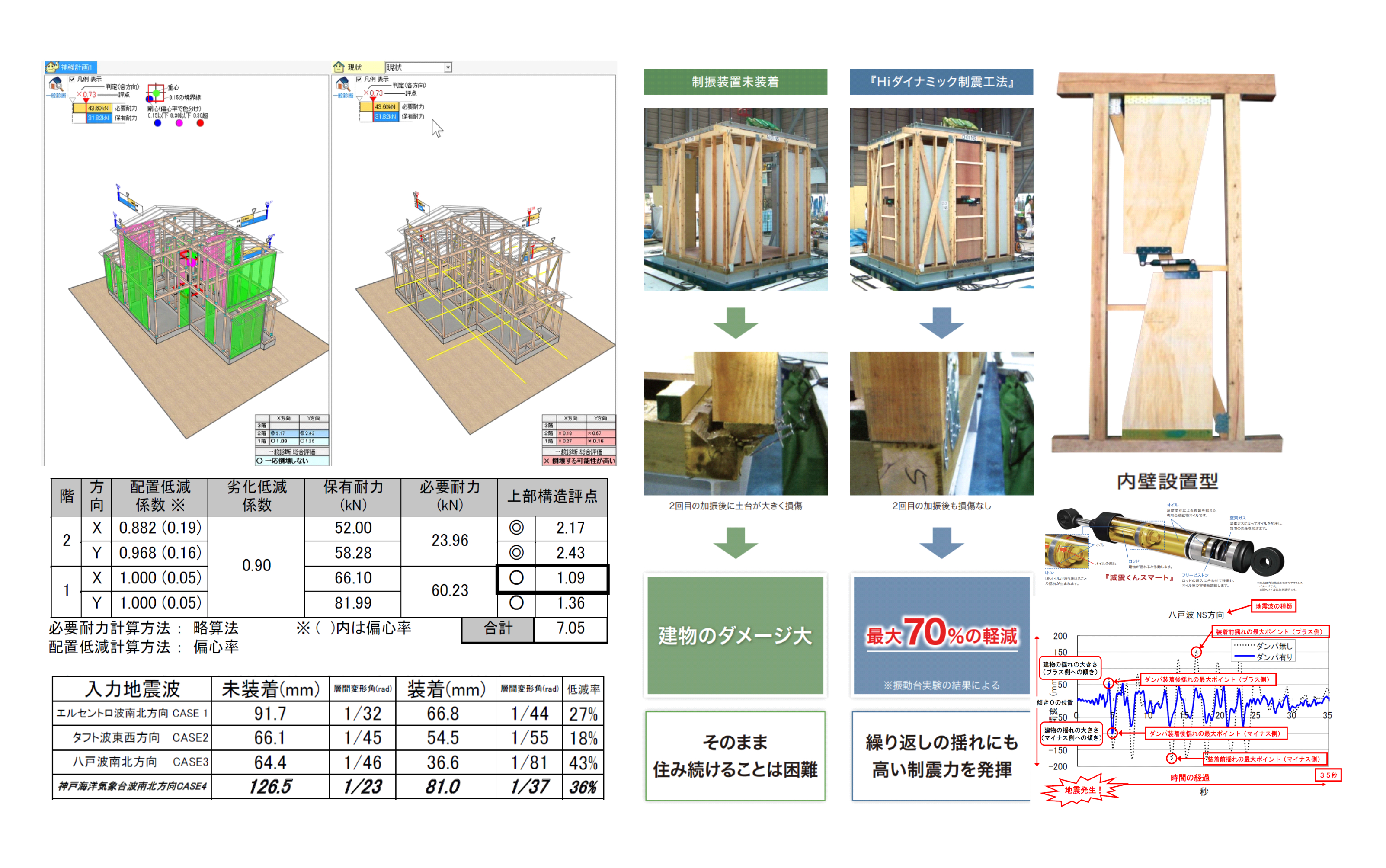 そして制震ダンパー(建物が歪んだ時に戻す作用)を付加し、繰り返し地震に強い建物にした。