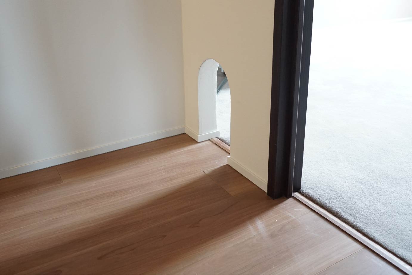 床には手入れが楽なタイルカーペットを採用。汚れても部分交換できるため、清潔で持続可能な暮らしに。