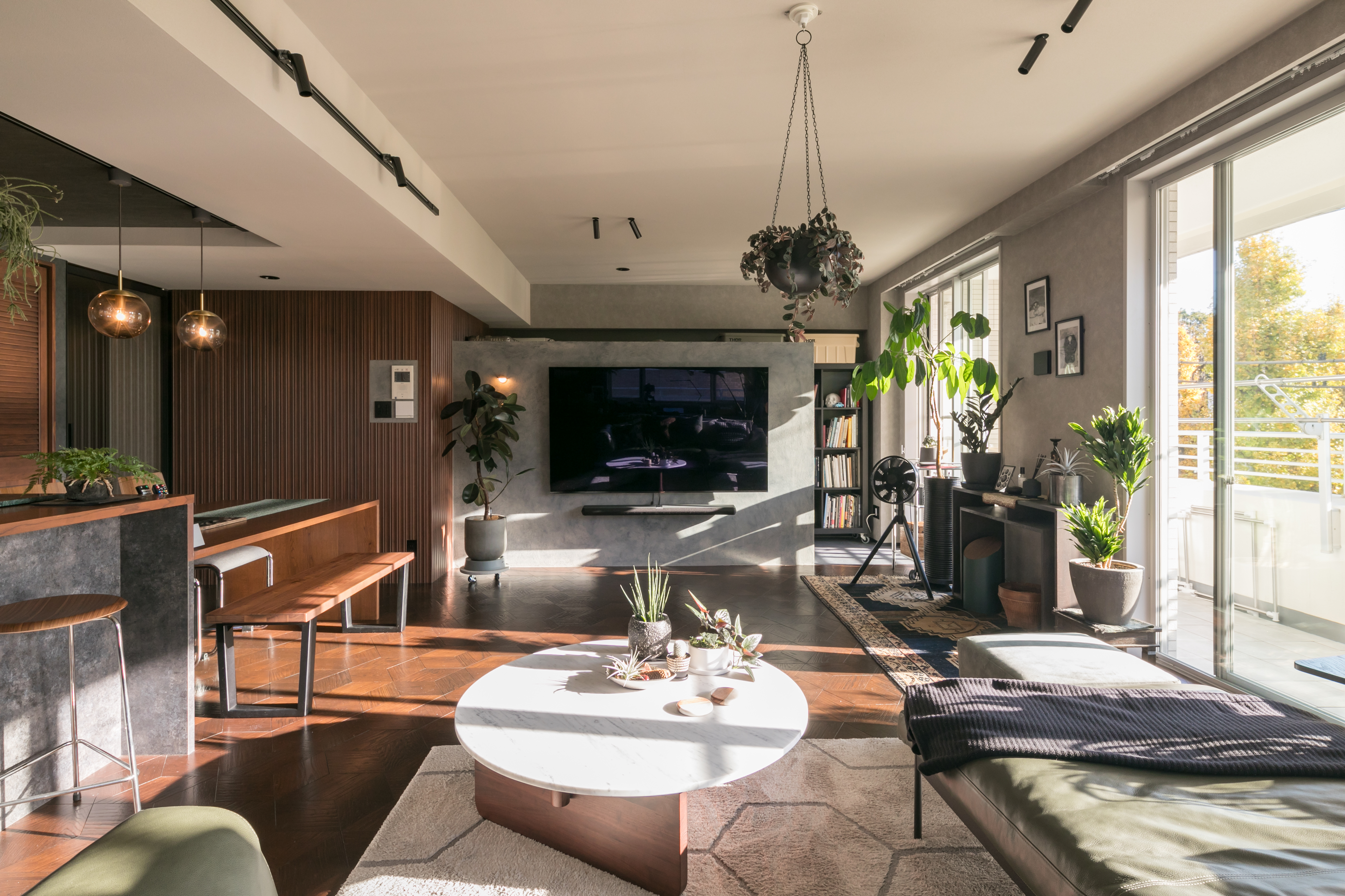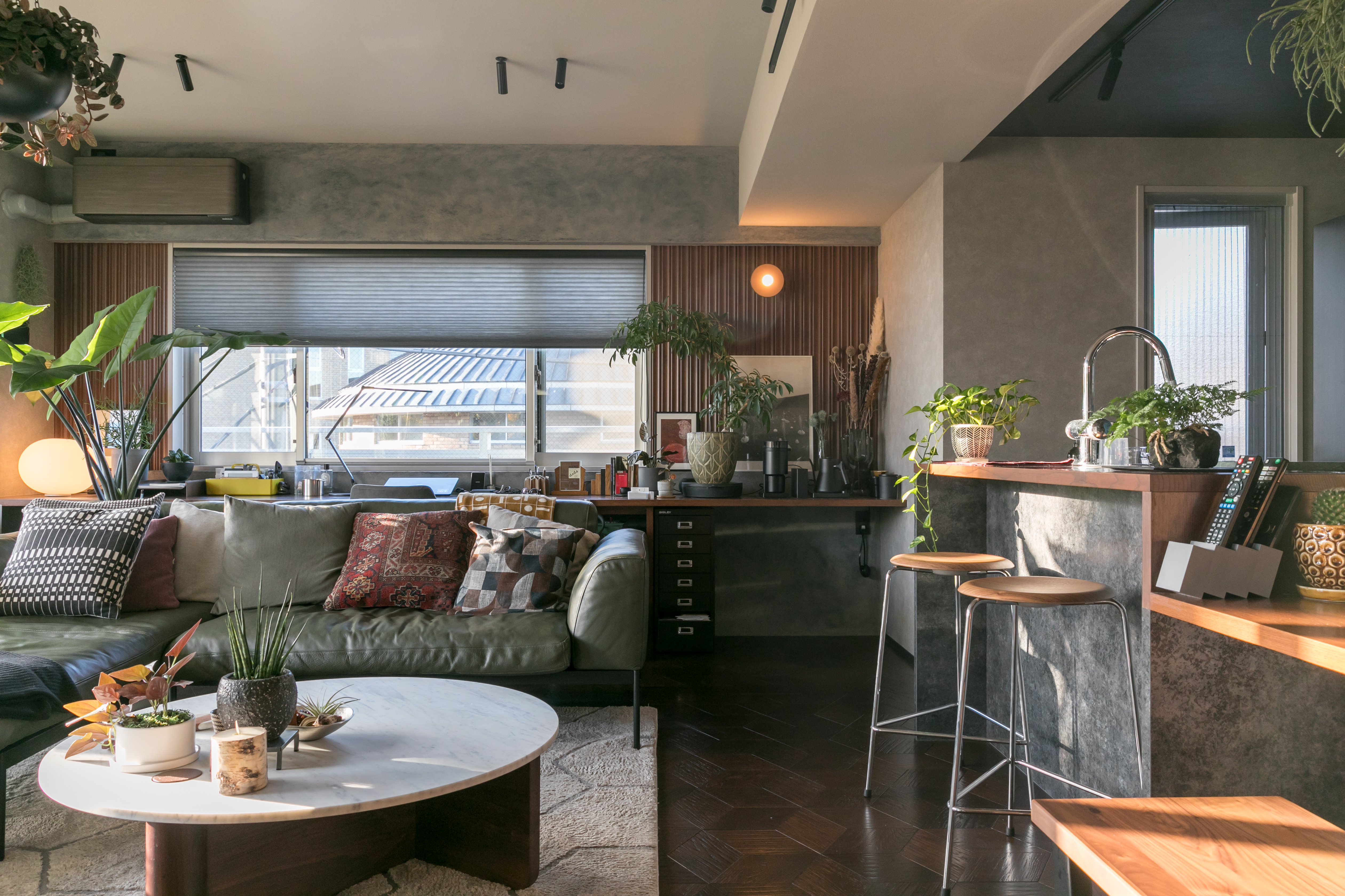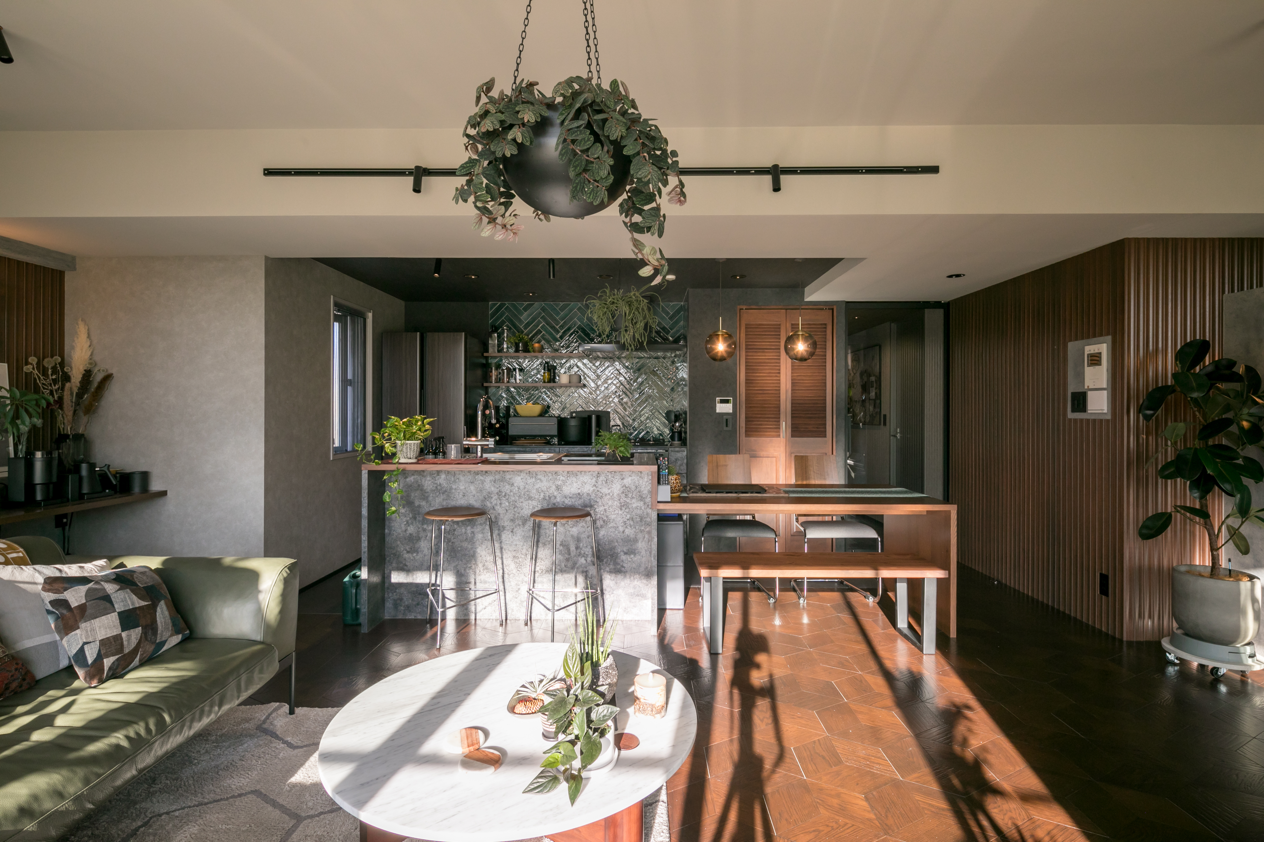こだわり抜いた上質な空間は、家具や植物と調和し、重厚感がありながらも居心地の良い住まいとなりました。