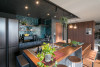 使い勝手を気にされていたキッチンはアイランド型を採用し、ダイニングテーブルと一体的なデザインに。ソファ背面にはワークスペースを設けました。TVの掛かった壁の裏側にWICを設け、上部を開放することで空間のつながりを保ちつつ収納力も確保しました。