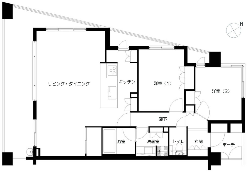 元の2LDKの間取りから、ご夫婦とお子様の暮らしに合わせて、LDKを広くとりつつ各々の寝室を確保したプランをご提案しました。