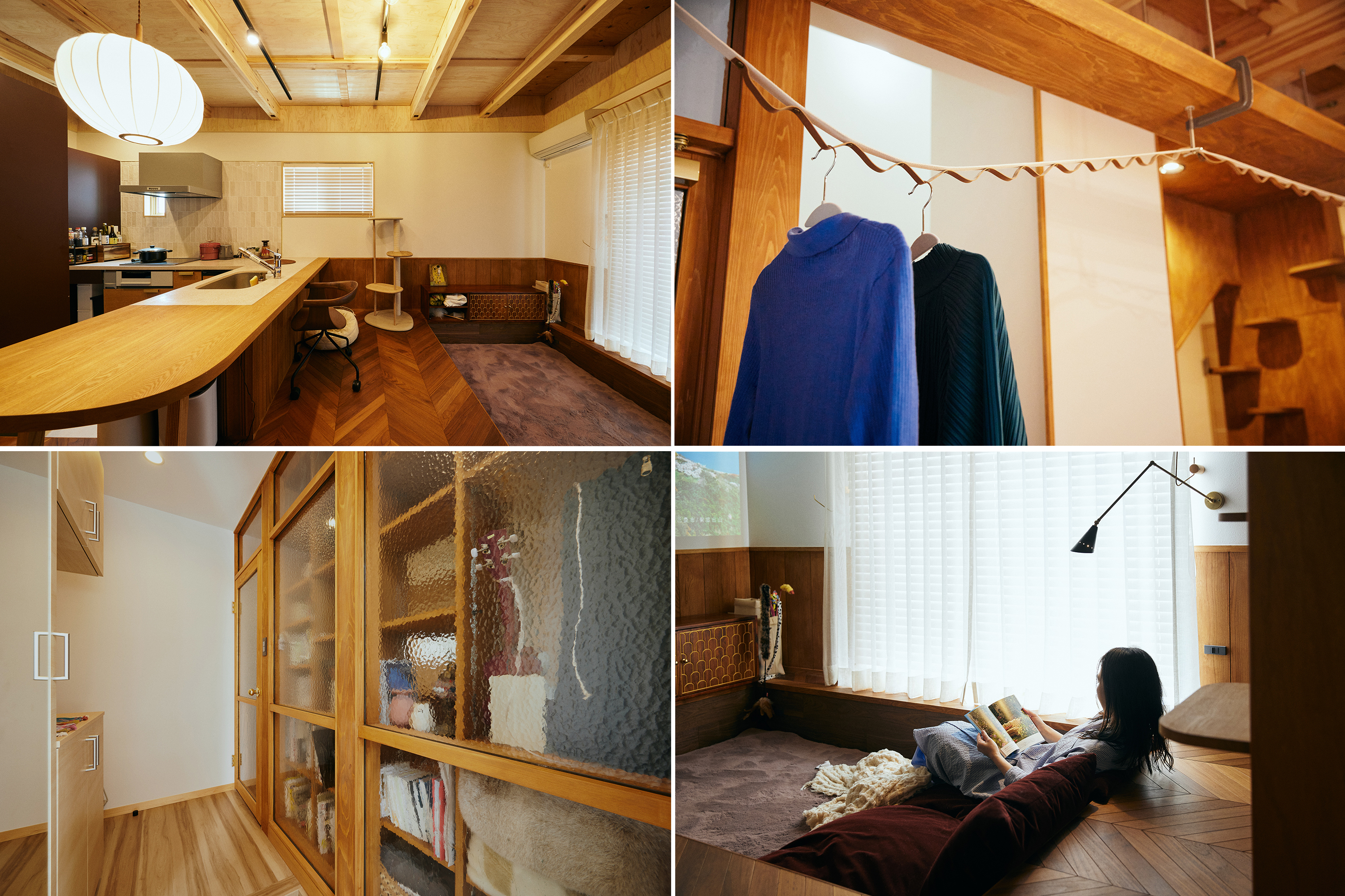 30代シングル女性が猫と暮らすための住まいです。将来のライフイベントによる住み替えも念頭に、取得コストやリセール時の「資産価値」を備えたリノベ向き中古物件探しからスタート。中心市街地にある勤務地の最寄駅から2駅以内、住まいも最寄駅から徒歩5分圏内が条件でしたが、治安面もあって物件探しは難航。そこで提案したのは新築建売住宅を部分リノベして暮らす方法。適法な新築物件は、耐震性はクリア。断熱性能の評価はなかったですが、弊社にて再度検証し、断熱等級4相当であることを証明。住宅ローン減税対象額の引き上げもできました。建売住宅はデザインや間取りの個性は少ないですが、性能・品質は悪くありません。仕入れ等の企業努力によって成し得たローコスト住宅ですから、私たちが同じ仕様で計画しても価格では及びません。建売メーカーと、あったらいいなを提案するしわく堂によって実現した「いいトコ取り」の夢のコラボ住宅なんです。