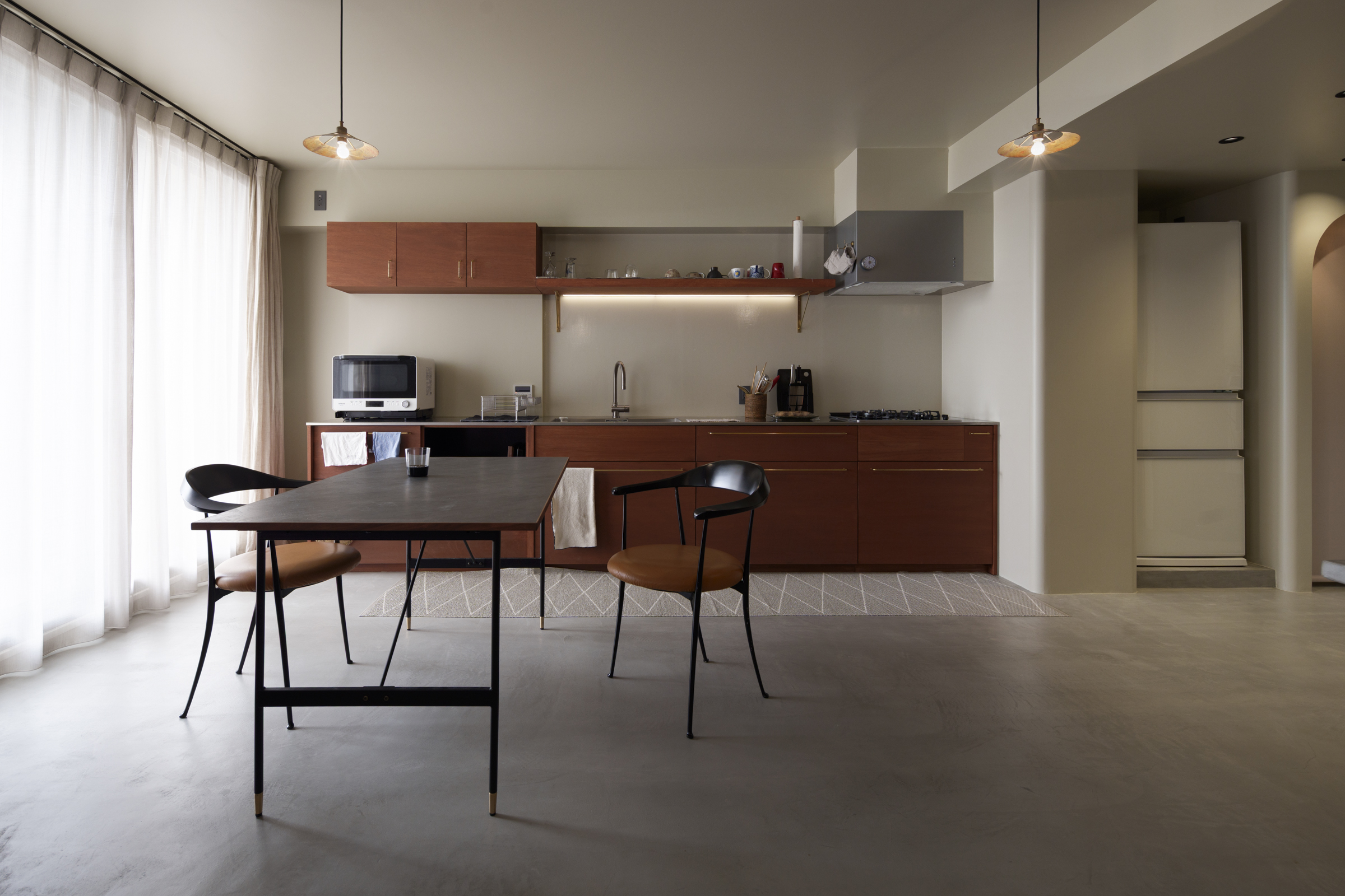 既存の建具やディテールは雰囲気を縛る要素であったため取り払い、骨格を最小限に整えるにとどめた。その上で住まい手の感性を受けとめる余白を残し、最小限の手数で空間全体を刷新している。