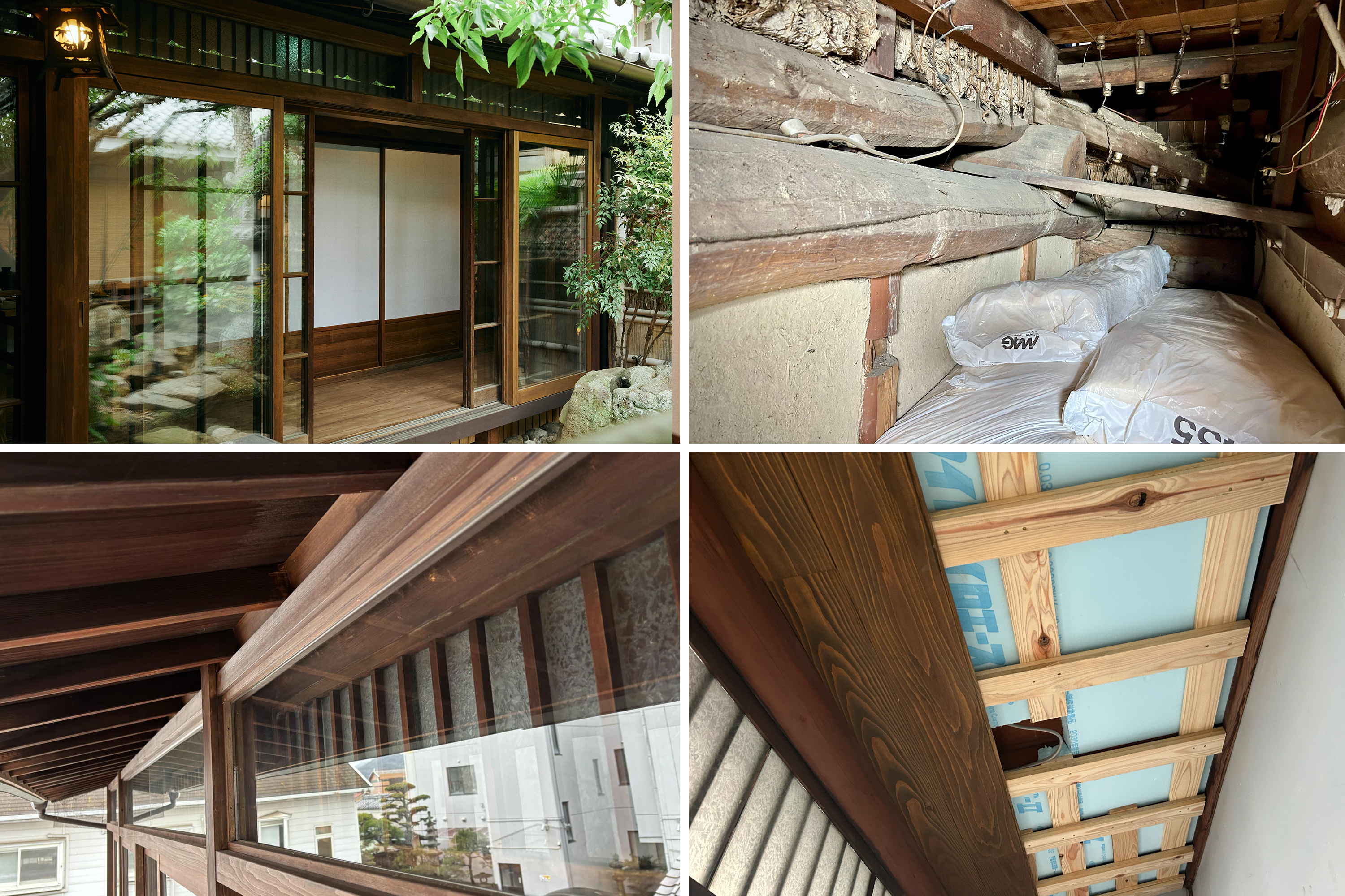 前所有者との縁がつながり、町屋を引き継ぐことを決めた宿主の要望は、大正期建築の間取りや空間構成、瀟洒な細部意匠を活かしつつ、讃岐の魅力がつまった門前町のまちやどへと改修すること。「寒くてしょうがない」が良しとされてきた古民家ホテルの性能アップをいかに図るか。