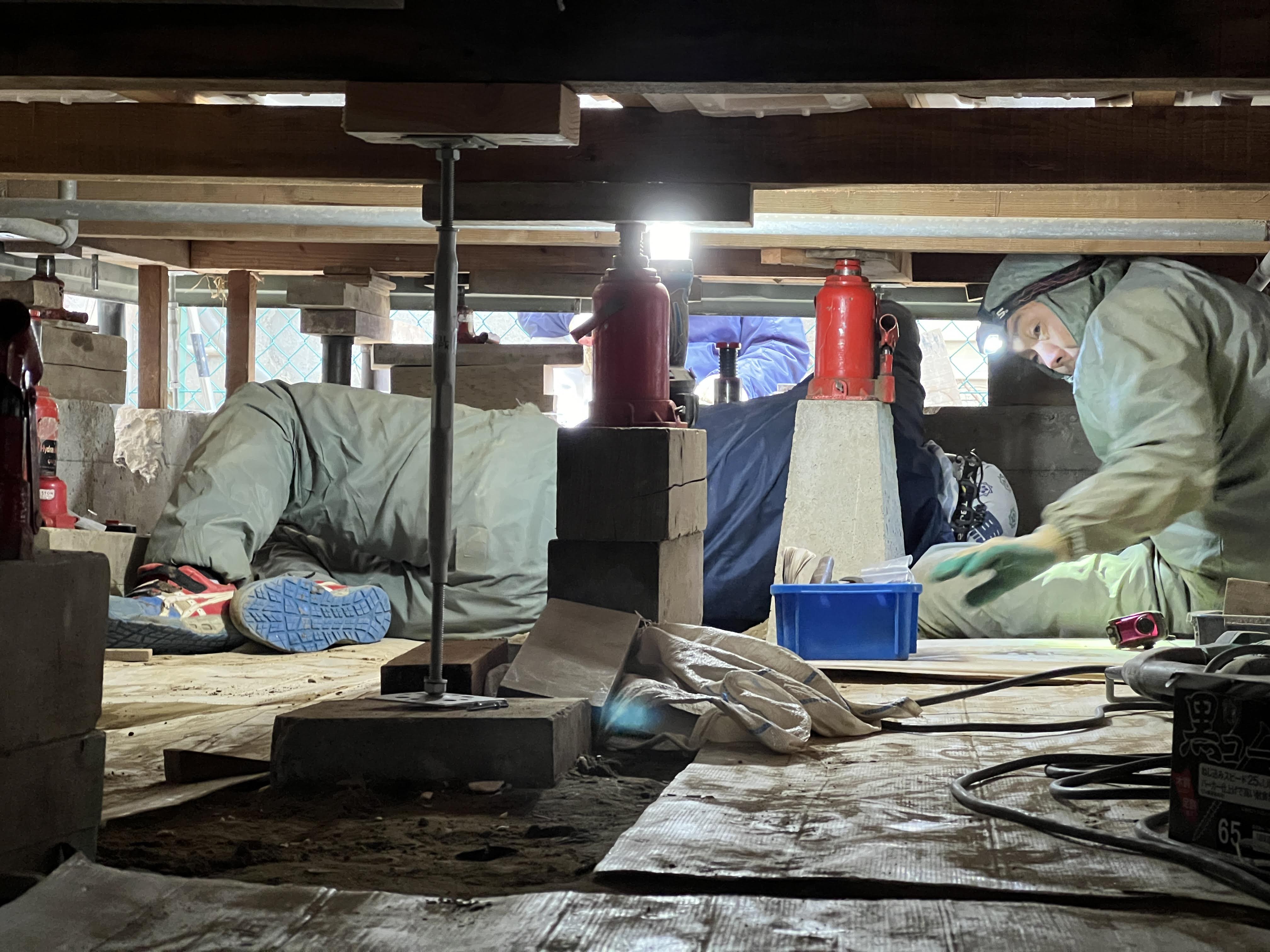 依頼先は高知県の(有)曳家岡本。沈下修正や曳家工事で多くの記事をブログで発信しており、新潟での依頼も多くあり、相当期間新潟に滞在して工事を進められるとのことで、当社も依頼することにした。