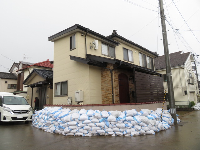 被災直後に現地調査に行った際には道路から土砂や水があふれ、片付けをした土嚢が積みあがっていた。