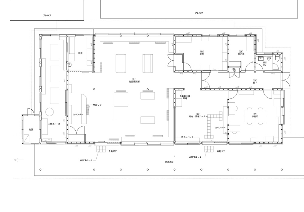 舞台となる道の駅もまた、ダム建設による村の移転という歴史の中で生まれた、観光客のための施設。しかし、コロナ禍で観光の形は変容し、その存在意義は揺らいでいた。加えて、真西を向いたファサードから差し込む強烈な西日は、商品を劣化させ、快適性を損なう設計上の大きな負債も抱えていた。村の生命線と観光拠点が同時に失われるこの二重の危機が、村長肝いりの再生計画の出発点となる。
