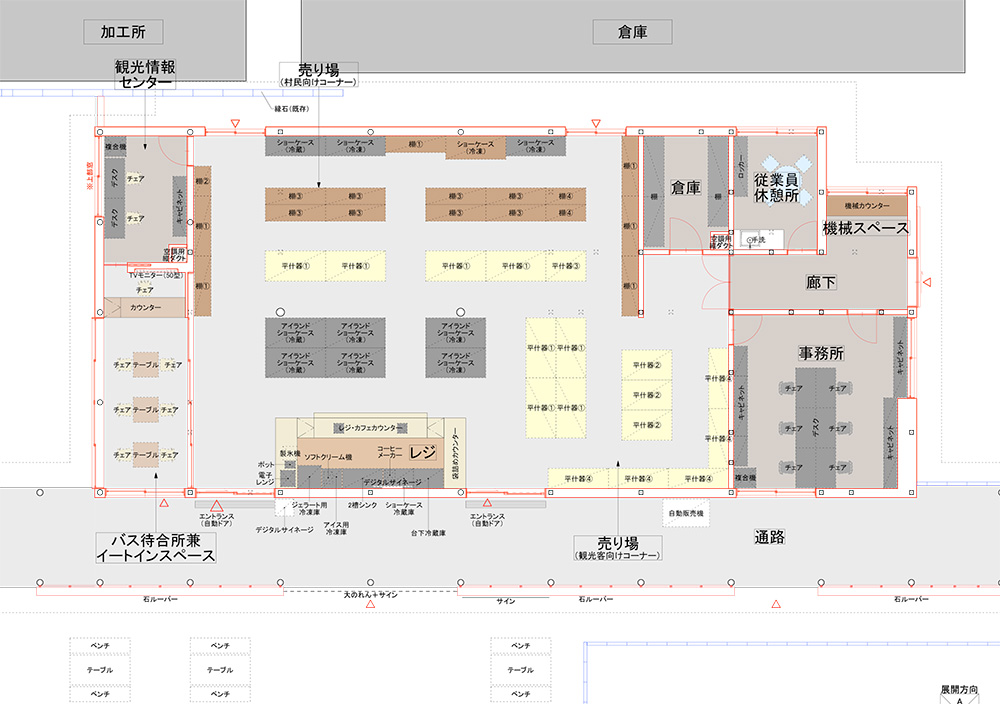 まず、観光客向けだった売り場の役割を再定義。面積を約2倍に拡張し、村民の日常を支えるスーパーマーケット機能を統合した。これにより、道の駅は単なる通過点から、観光客と村民の動線が交差する、村の新たな中心(ハブ)へと生まれ変わった。