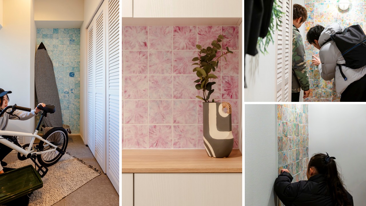 ビーチクリーンで拾った海洋プラスチックは、リノベーションマンションの内装タイルへとアップサイクルされ、日常に。