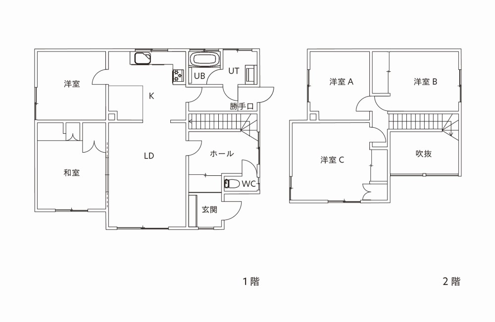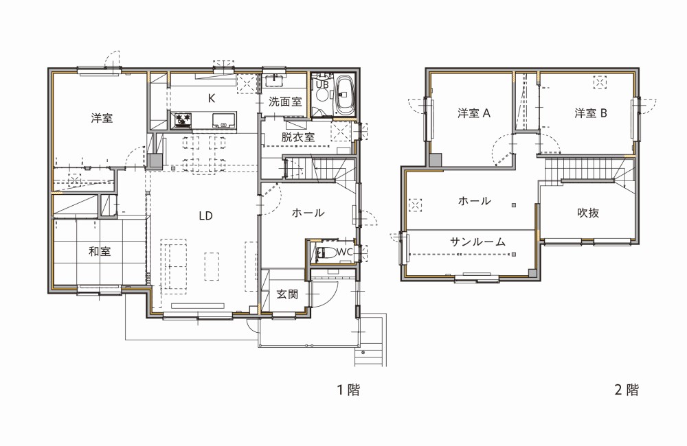 課題だった独立キッチンや個室で細かく仕切られた間取りは、空間のつながりを意識し、家全体が明るく開放的になるよう、キッチンは独立型から対面型に変更し、リビングとのつながりを意識した配置に。さらに、もともと1階リビングに続く個室は小上がりに変更し、扉を設けずオープンにすることで、空間に広がりと明るさを生み出した。