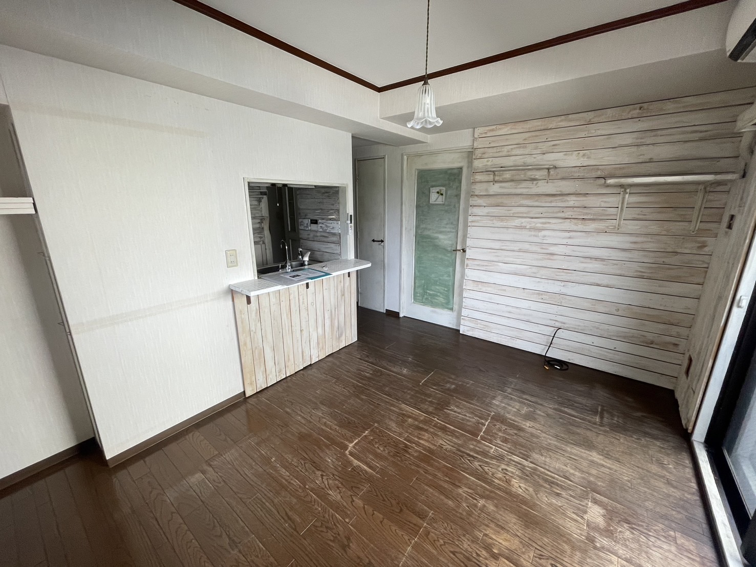 リノベーション前は、キッチンの袖壁でリビングとのつながりが感じられず閉塞感がありました。隣の居室との間仕切りも光を遮り、空間の広がりを十分に活かせていない状態でした。「もっと明るく開放的で、暮らしやすい空間にしたい」と感じていた施主様。水まわりも築年数相応に使い勝手が悪く、清掃も手間がかかるのが悩みでした。内装も統一感がなく、住戸全体として落ち着きに欠ける点が気になっていたそうです。こうした課題を解消し、快適さとデザイン性を両立させることを目的に、改修を決断されました。