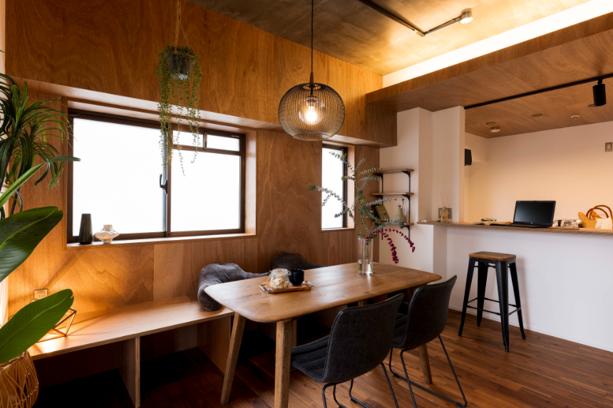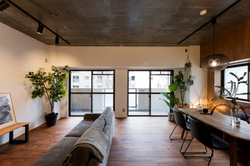 また、LDK部分は躯体現しの天井を活かし、間接照明を設置。