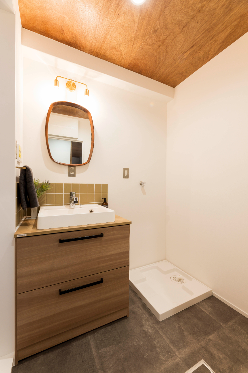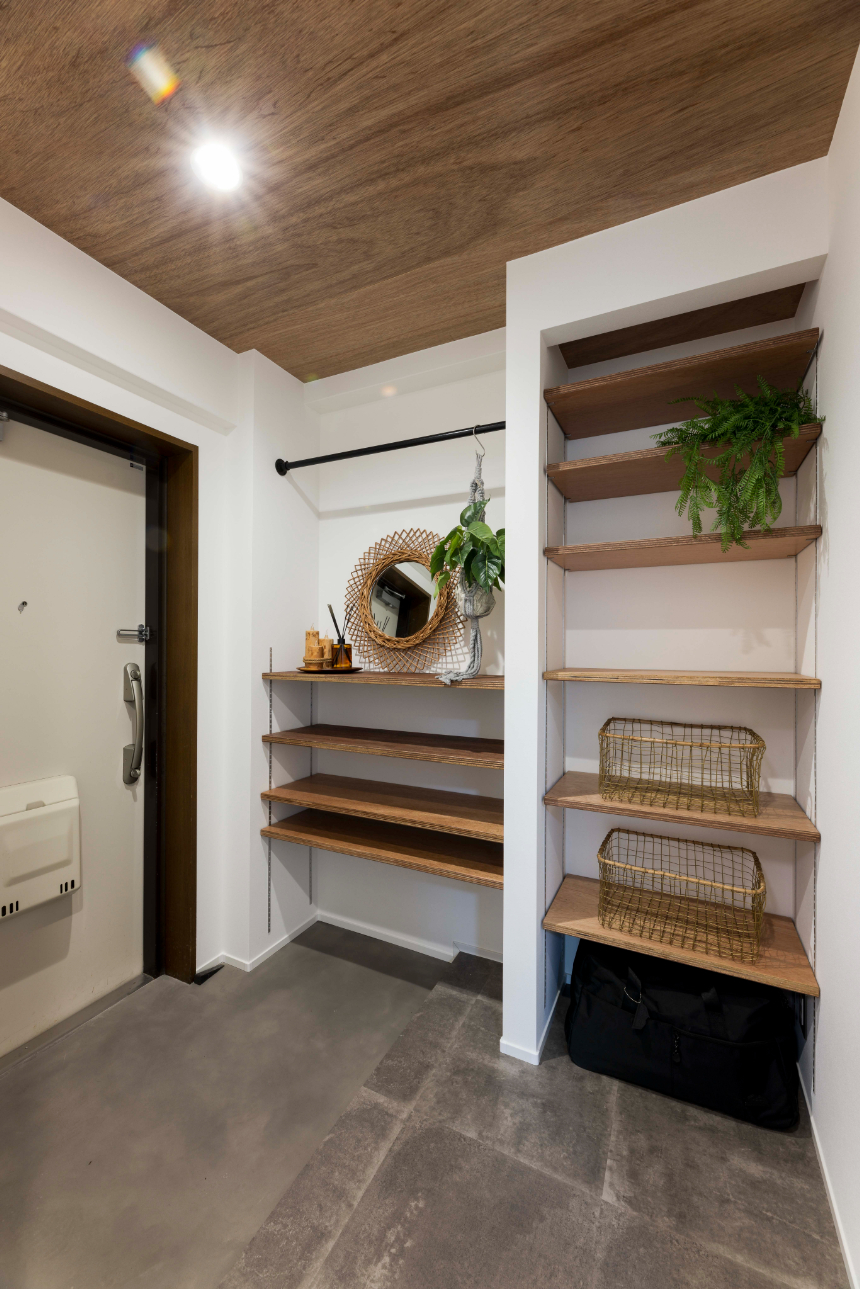 無機質な天井に温かみをプラスし、落ち着いた雰囲気を演出しました。
