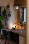 昼は日の光が入り込み明るく、夜になると間接照明で大人びた空間へ。