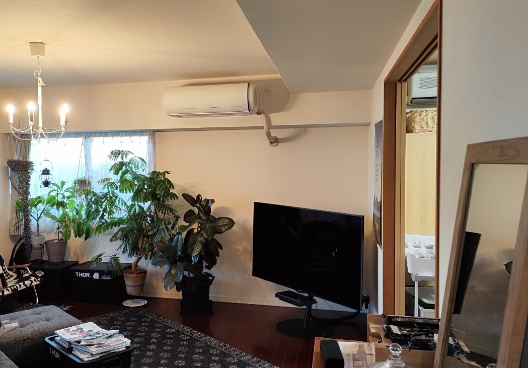 家族が自然とリビングに集まるような空間にしたいご要望から、リビングの拡張だけでなく、本が好きなお子様達用にヌックスペースを配置。広くなったリビングでもキッチンに立ってご家族の気配を感じれる配置に。各個室を最低限の広さに抑え家全体の間取りの最適化を行うことで、ランドリールームも新たに設けることができた。家族5人分の洋服を一ヶ所に集約するウォークインクローゼットは家の中心に設けた。リビング・廊下・洋室どの部屋からのアクセスも便利な動線に配慮。一番下のお子様の一人部屋が必要となる時には、カーテンや壁で部屋を間仕切っても出入りができるよう、ウォークインクローゼットの出入り口を活用し、将来的な間取り変更も容易にできるように設計。家族の趣味であるキャンプ道具は玄関近くに大容量の納戸を配置することで、土を家の中に上げることなく帰宅後の片付けもスムーズに。カラーテイストは大好きなグリーンとお手持ちの家具にマッチしたヴィラリゾート風。リビングの大型ミラーとの相性のよいカラーでまとめた。グリーンも随所に感じられるよう、天井からの吊り下げ位置も入念に打合せ。窓回りは重たいイメージにはしたくないご要望からレースカーテンのみとし、自然光と風を感じられるグリーンに囲まれた癒しの空間を作り上げることができた。念願のリノベーションでご家族それぞれの時間を同じリビングで過ごせるようになった。