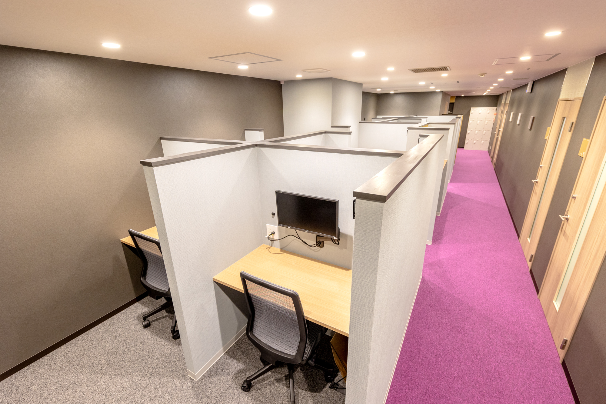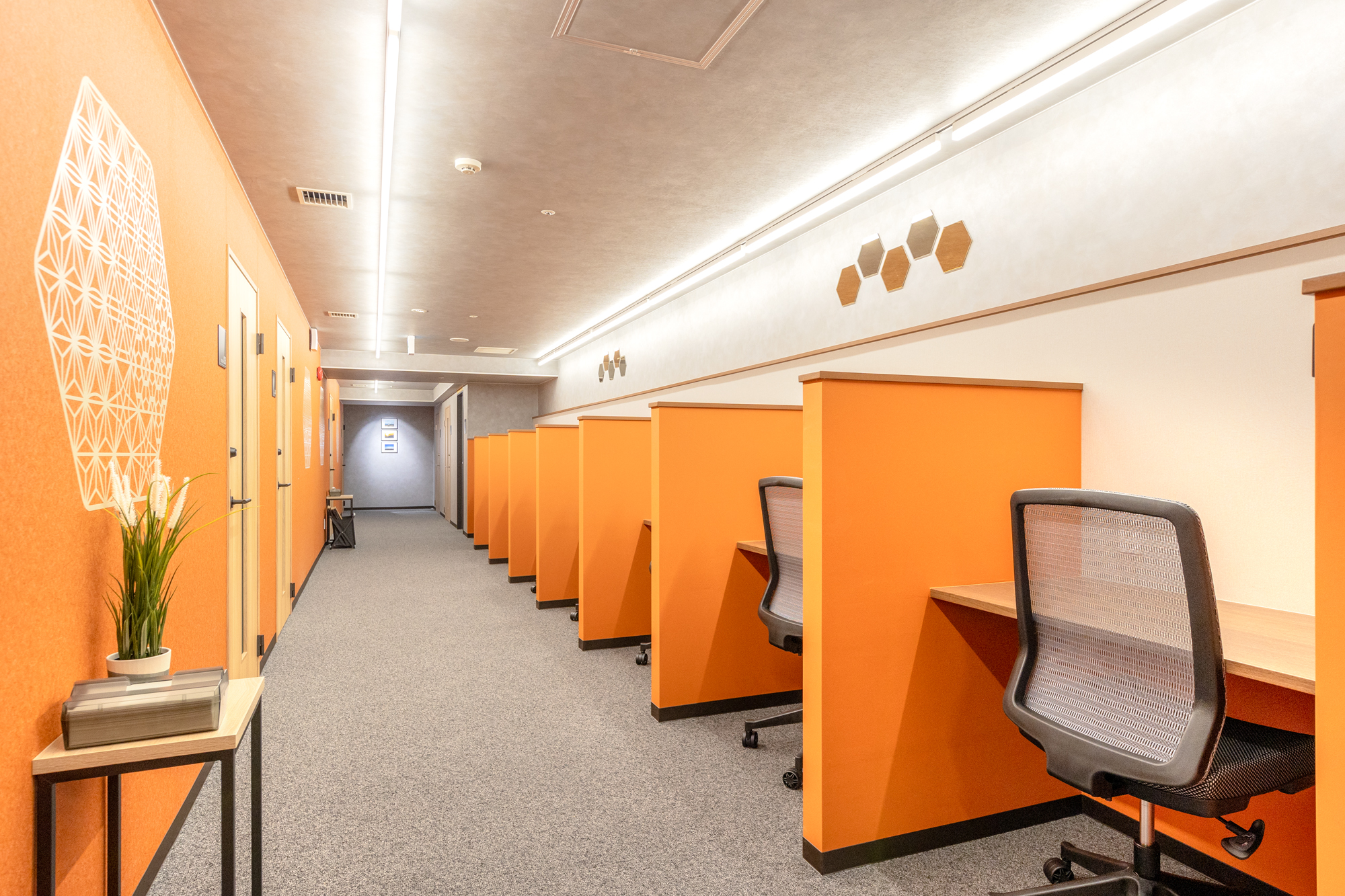 残るスペースには、東武線を走る特急電車をモチーフに、新旧イメージを共存させたソロ仕様のコワーキングスペースを新設。多様化する働き方と、ベッドタウンとして機能する地域特性から、テレワークや趣味勉学に対応し、住民の仕事と暮らしを密接にする「拠点」としての役割を果たすことに注力した。