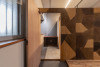 お施主様の子供が愛する「爬虫類」が家族の絆を繋ぎ、話題の中心にあることを象徴的モチーフに据えました。城の石積みも好きで忍者屋敷のような扉も希望されていたため、爬虫類の鱗、城の石積みを模したデザイン壁を採用。目地が複雑な造作建具や壁は1㎜単位のCAD図面、実物大モックアップを経て職人の手で形に。仕上げの塗装の一部はお施主様家族全員参加で、空間とともに思い出を刻みました。