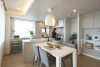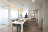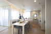 カウンターテーブルをダイニングテーブルとの間に設けた事でキッチンとの間仕切りの役目にもなっている。