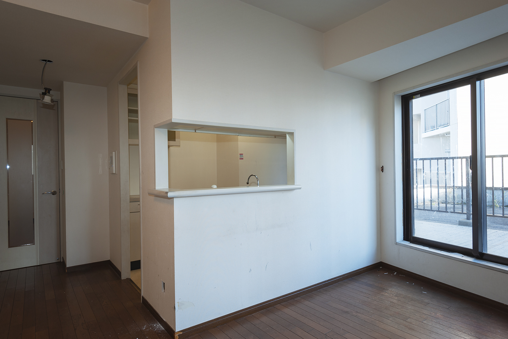 閉鎖的なキッチンスペース。暗く圧迫感のあったLDK
