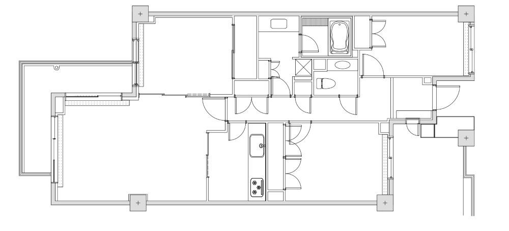 キッチンはクローズドキッチンだったところをコノ字型のオープンキッチンに変更しました。
