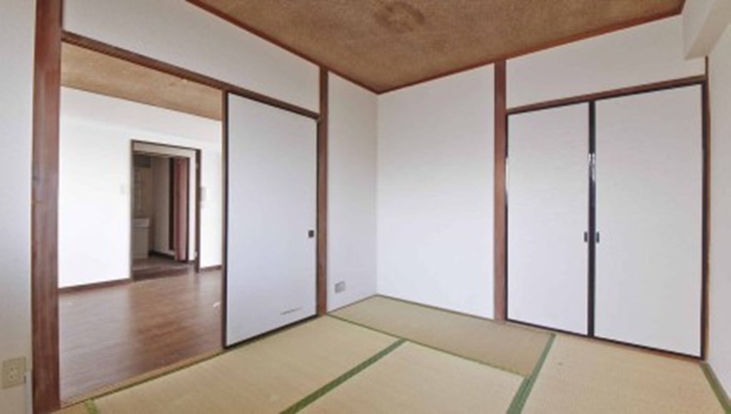 元々の間取りは部屋が細かく仕切られていて、年期の入った内観。部屋の面積に対する水廻りの狭さも否めません。