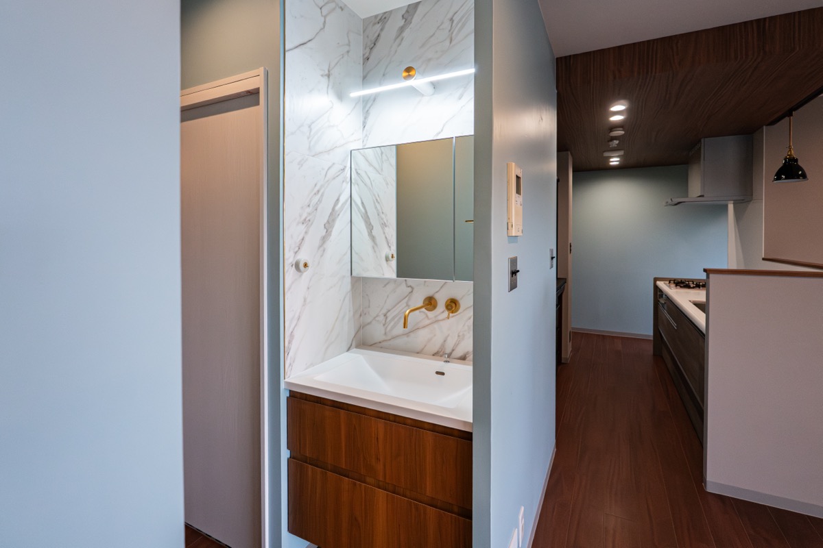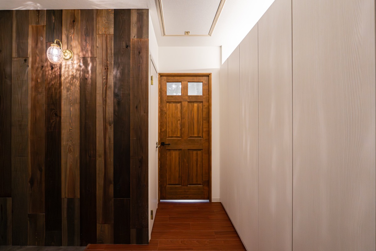 かつては転勤の度に片付けられていた生活。長く同じ家に住む今だからこそ、散らかりやすさや暮らしの不便を見直し、すっきりとした動線と収納で快適さを確保。さらに、施主様が憧れていた世界観をもとにショールームで建具や素材を選び、理想に向けて一緒につくりあげた“お気に入りの住まい。