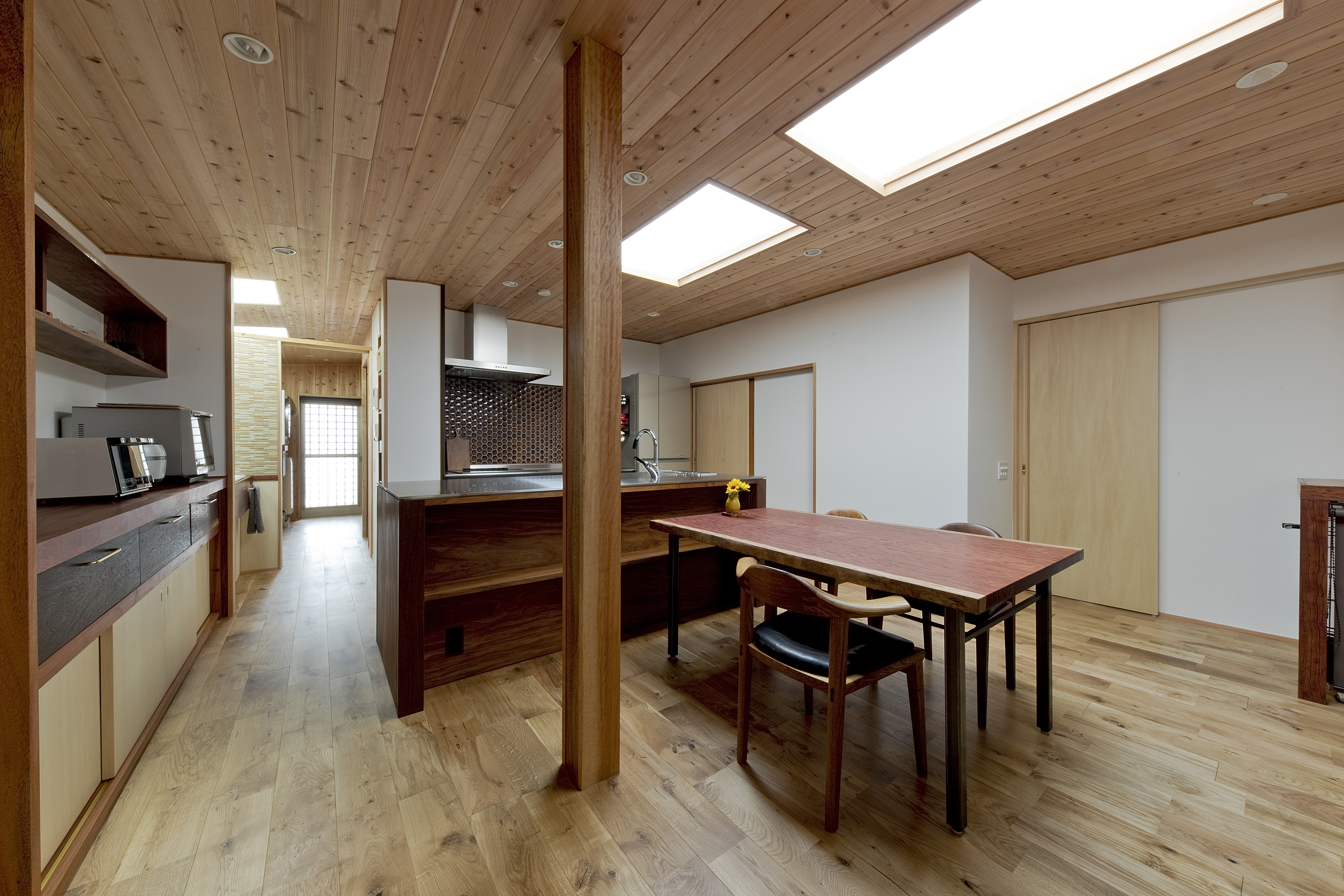 LDKは、あえて大きな窓を設けず、天窓を用いて必要な場所に必要な分だけ光を供給。