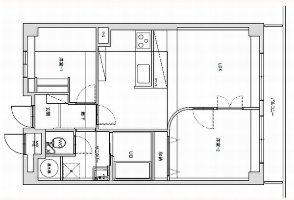 2LDK(52.51㎡+バルコニー面積 5.9㎡)のコンパクトさは、