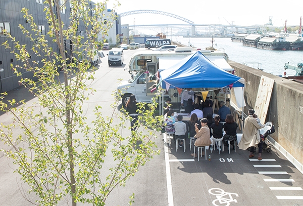 また、各地でセミナーの開催やイベントへの参加をする際には、オーニングを出し、椅子や机を外に並べて普通車駐車場3台分のスペースで即席のセミナー会場ともなる。
